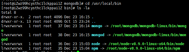 ln -s /root/mongodb/mongodb-linux/bin/mongo /usr/local/bin/mongoln -s /root/mongodb/mongodb-linux/bin/mongod /usr/local/bin/mongod